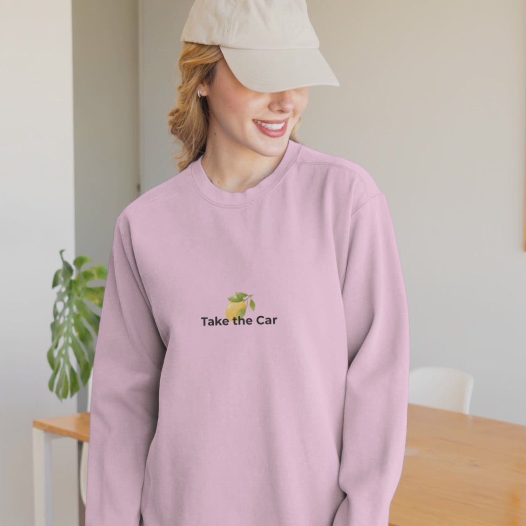 Unisex-Sweatshirt mit „Take the Car“-Aufdruck – Retro-Auto mit Zitronen