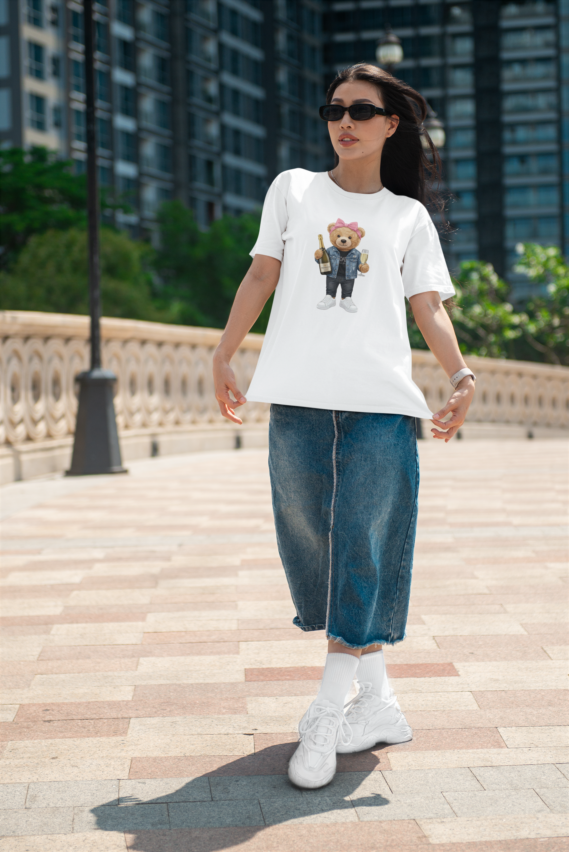 Tričko s medvídkem Prosecco Girl od My Keepsake je stylový kousek, který spojuje hravý design, městskou módu a pohodlí pro každodenní nošení. Originální ilustrace medvídka s proseccem dodává outfitu osobitý charakter a okamžitě zaujme.