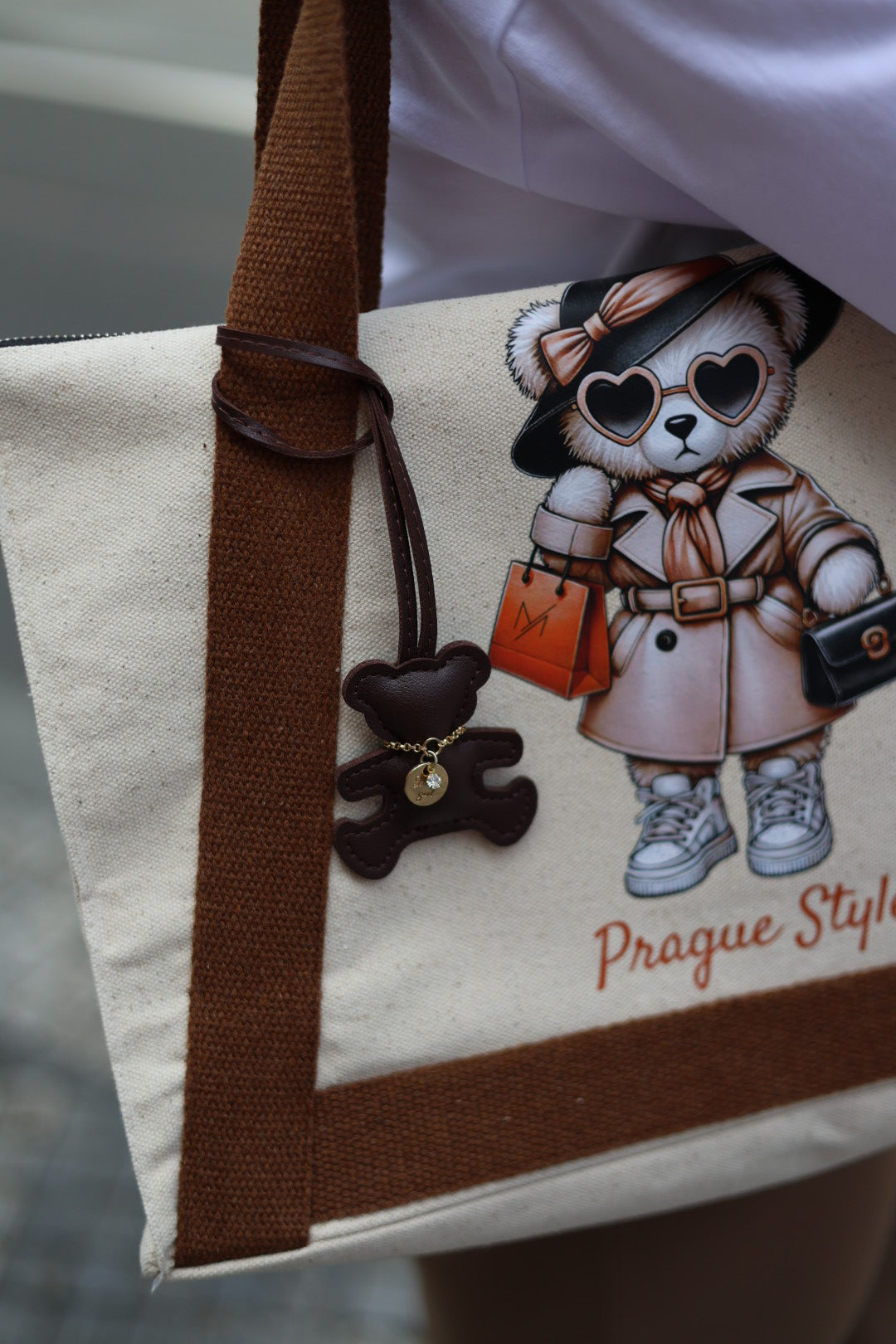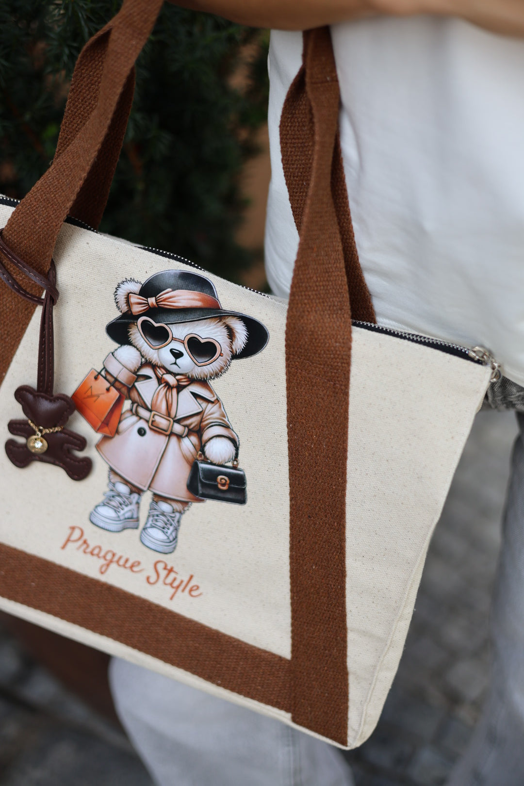 Виготовлений вручну в Чеській Республіці з високоякісної 100% бавовни, він поєднує в собі оригінальну ілюстрацію культового ведмедика в модному «празькому стилі» з високою міцністю та функціональністю. Ідеально підходить для щоденного носіння, шопінгу та стильних прогулянок містом.