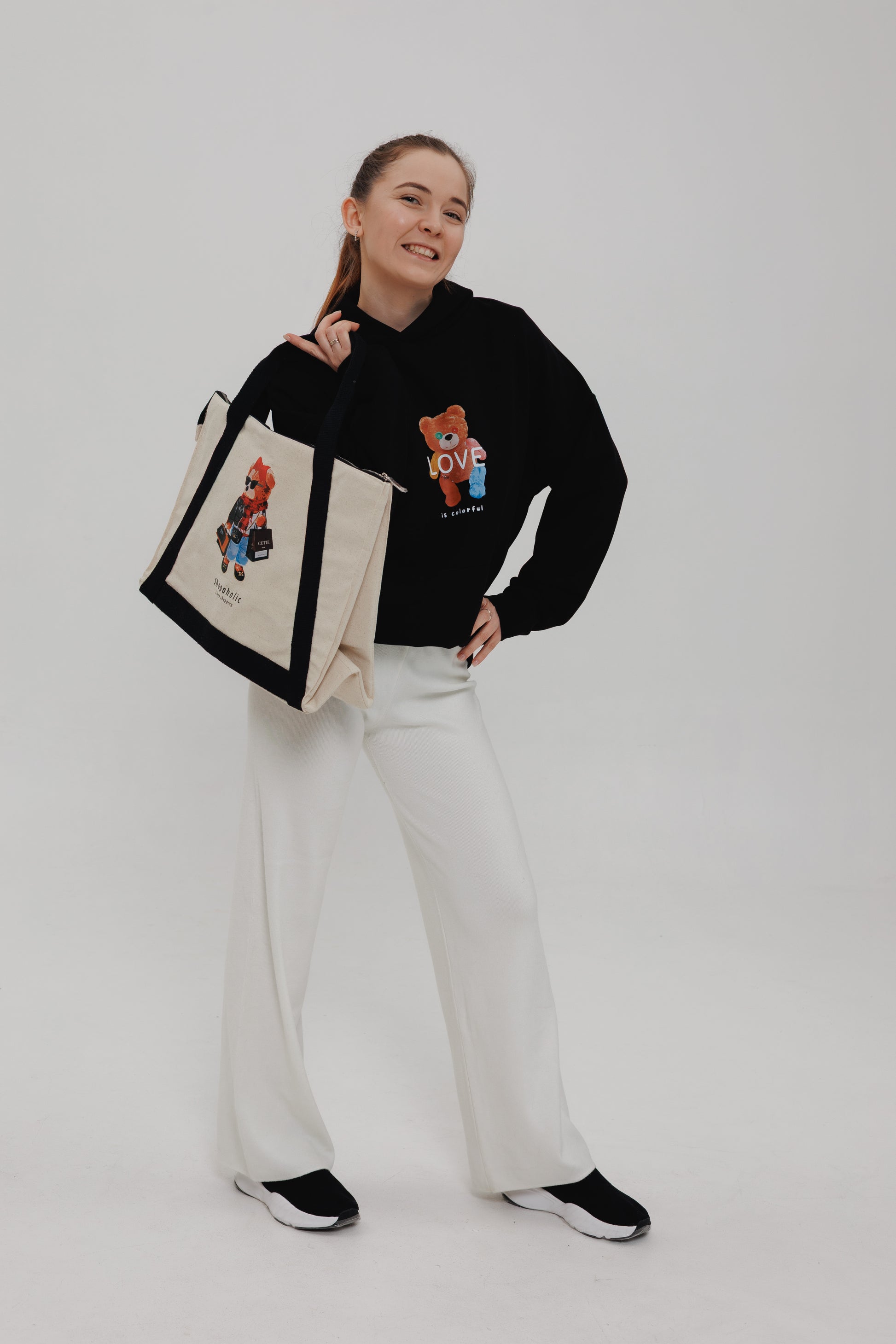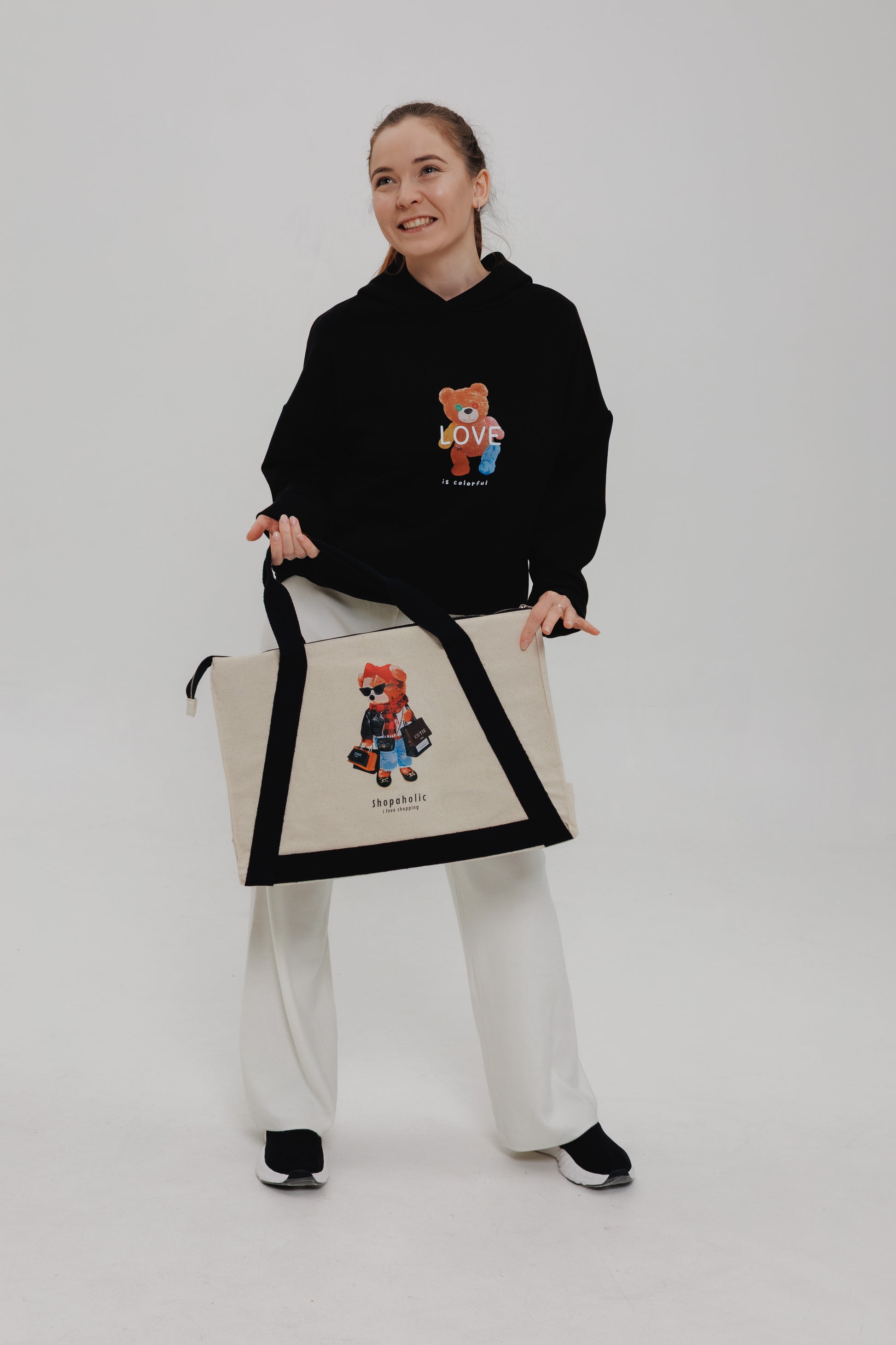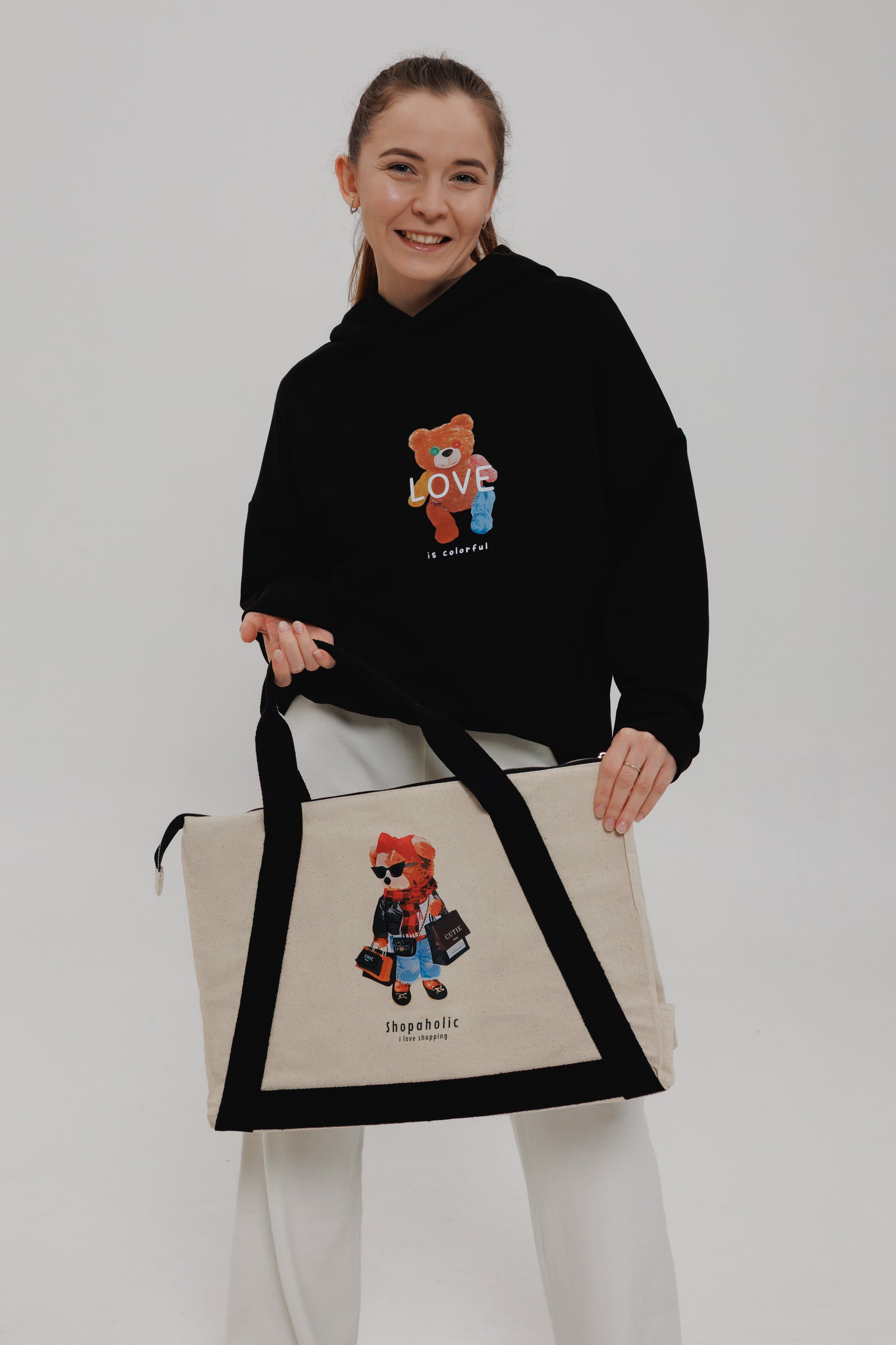 Стильна та практична сумка Tote Bag XL - Bear Shopaholic для всіх, хто любить моду та шопінг! 🛍️🐻 Виготовлений із 100% бавовни та ретельно оброблений у Чеській Республіці , він пропонує не лише чудовий дизайн, але й високу якість та довговічність. Достатньо місця для всього, що вам потрібно, і зручно носити щодня!